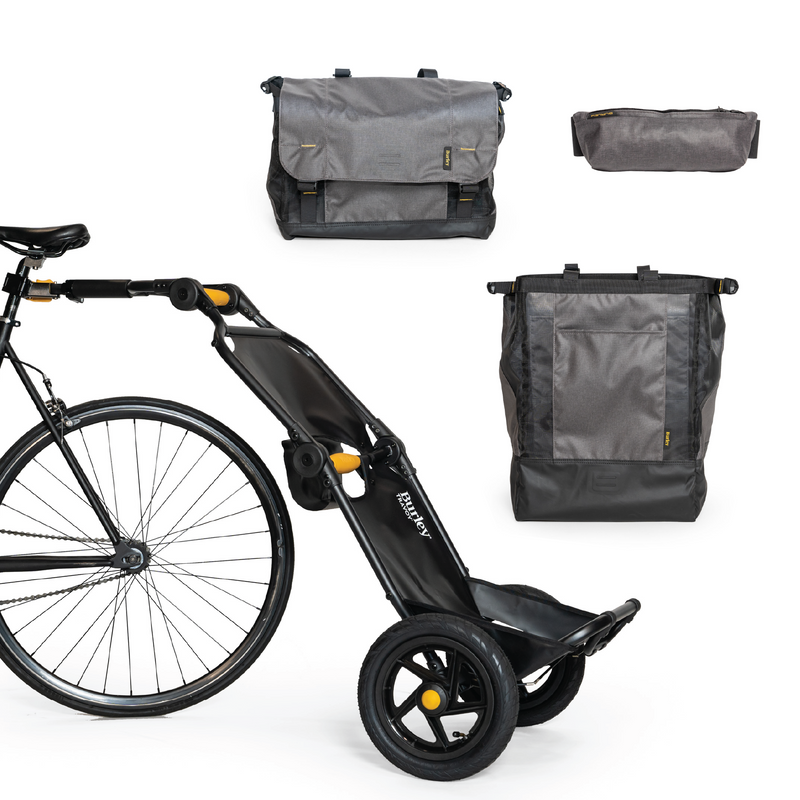 Unlock a car-less lifestyle with the Travoy Market Bundle! This bundle comes included with everything you need for easy grocery trips by bike: TravoyUpper Market BagLower Market Bag, and Travoy Rain Cover