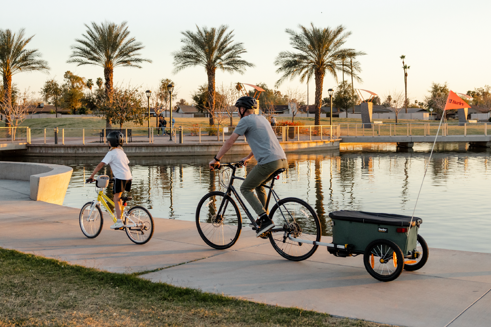 If you plan to use the Hopper for family outings and child transport, the Hopper Family Bundle is the best choice. It includes a padded seat insert with a 5-point harness and a sunshade kit to keep kids safe and comfortable while riding in wagon mode. Two Hopper Seat Insert and Sunshade Kits can be added to provide seating and shelter for up to two kids.