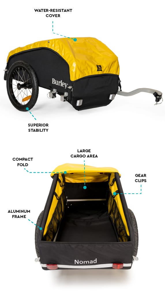 The Burley Nomad™ can carry up to 100 pounds (45 kg) of cargo, making it ideal for long bike tours or hauling heavy gear. It offers 105 liters of storage space, allowing you to bring along everything you need without worrying about overpacking.