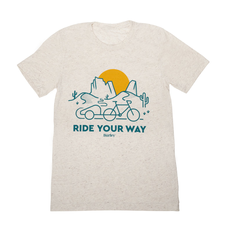 Oatmeal shirt with cargo trailer and Ride Your Way graphic.