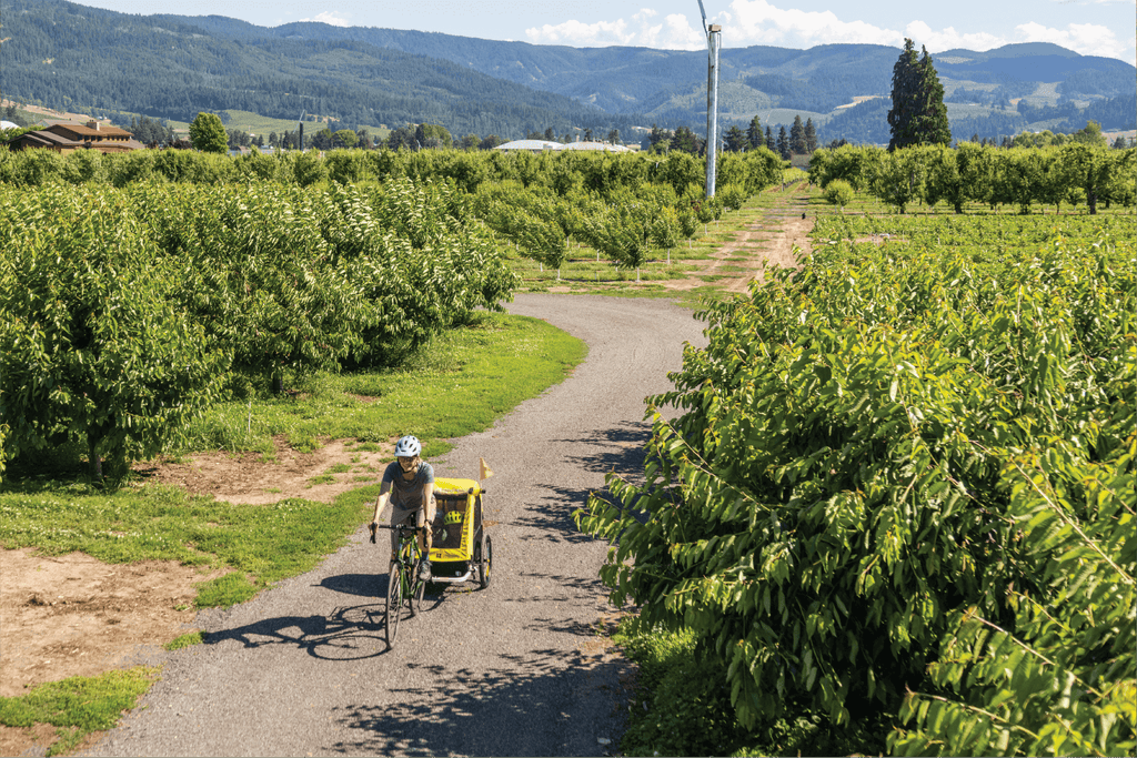 The Burley Honey Bee™ exceeds ASTM safety standards and is equipped with several safety features to protect your kids. It has a 5-point harness system to securely strap children into their seats, a full internal roll cage for impact protection, and reflective details for better visibility during low-light conditions. The parking brake ensures the trailer stays in place when parked, and tinted side windows provide sun protection (UPF 50+). These features make the Honey Bee a trusted choice for families prioritizing safety.
