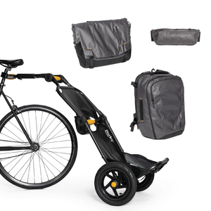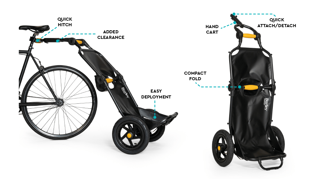 Tow arm padding and wide kickstand support off-bike use as a hand cart