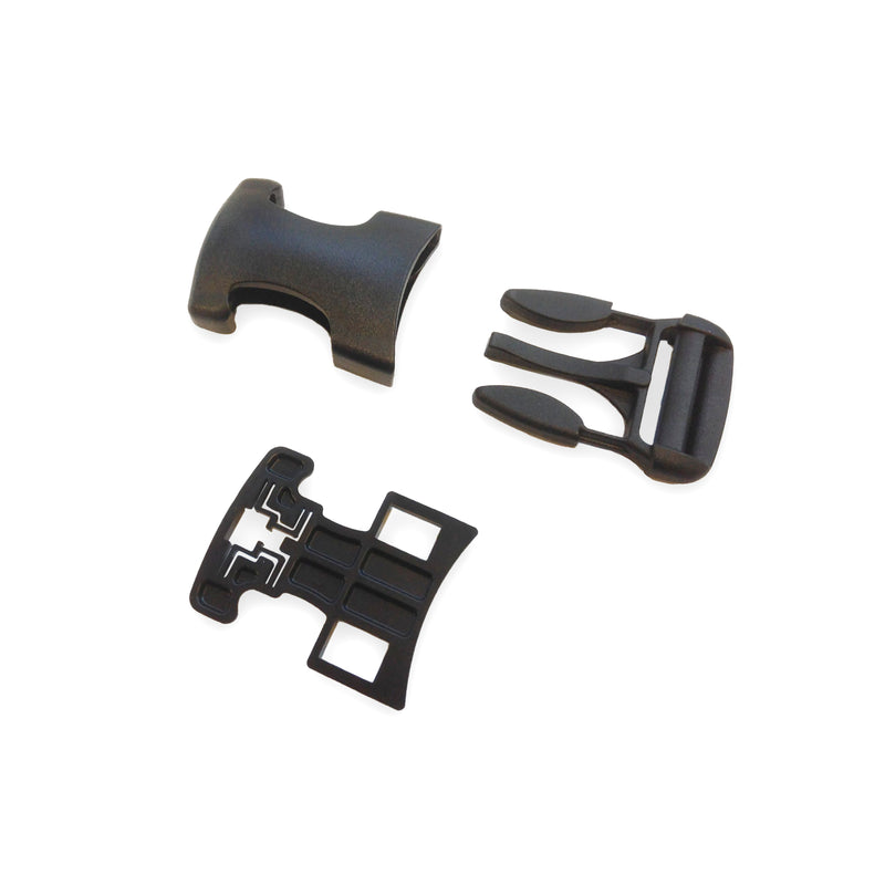 1" buckle assembly. Includes male buckle, female buckle, & backer plate.