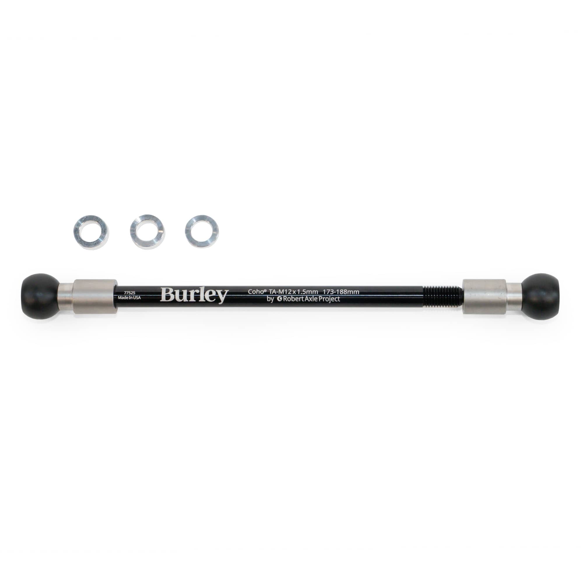 Note: The Coho Thru Axle is required for any bike with a 12mm rear thru axle to connect to the Coho XC. Stock axles are not compatible with the Coho XC hitching system.