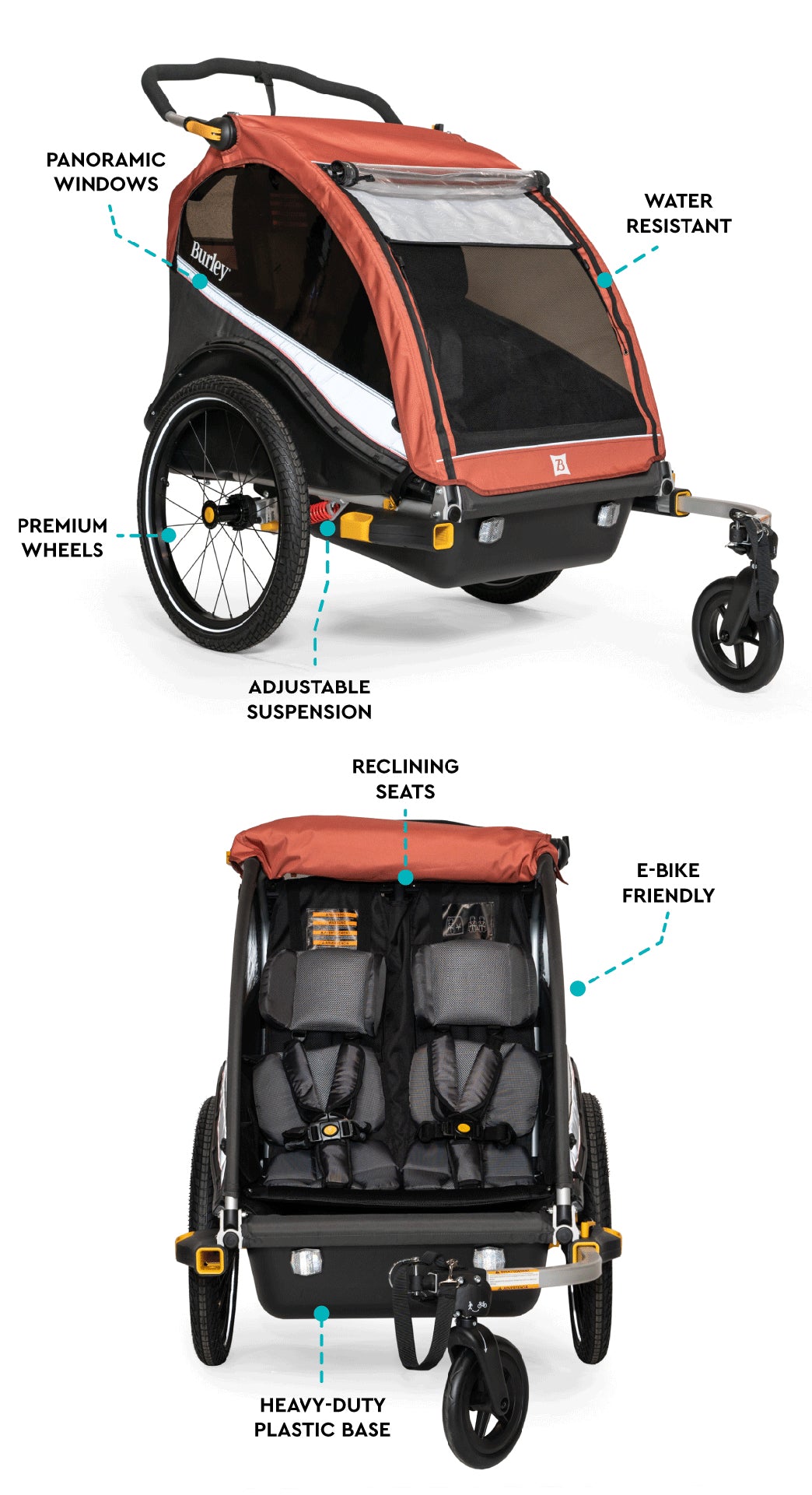 The Burley Cub® X is designed to handle various weather conditions. It comes with a water-resistant cover to protect against rain and wind, as well as UPF 50+ tinted windows that shield your children from harmful UV rays. The ventilated side windows and adjustable sunshade ensure that the interior stays comfortable, even on hot days.