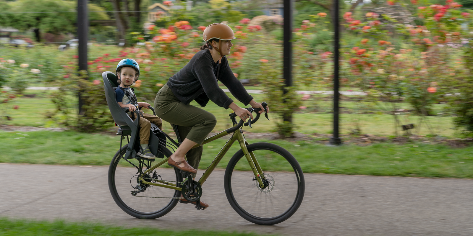 "This is an awesome child bike seat! Easy install. Love the five point harness, foot straps, and storage compartment. My 2 1/2 year old loves going for rides with me."