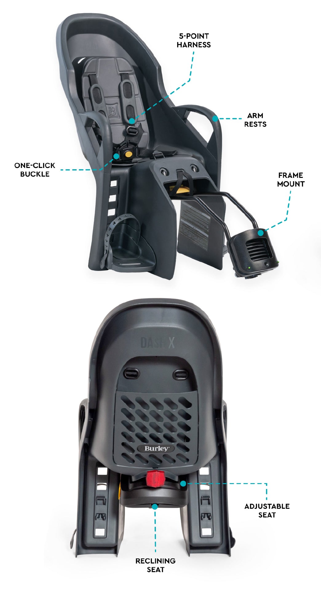 The Burley Dash® X FM is designed for children aged 12 months and older who can sit upright with a helmet on. A weight capacity of 40 lbs makes it suitable for kids up to about 5 years old, depending on their size and growth. This seat is perfect for introducing young children to biking, with comfort and safety at the forefront. Always consult with your pediatrician before starting to ensure your child is ready for bike rides.