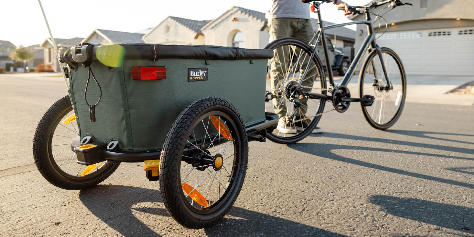 Yes! The Hopper is fully compatible with electric bikes (e-bikes), making it an excellent choice for eco-conscious commuters and families who want to reduce car trips. The lightweight aluminum frame and efficient tow system allow it to be easily pulled by both traditional and electric bicycles without adding excessive drag.